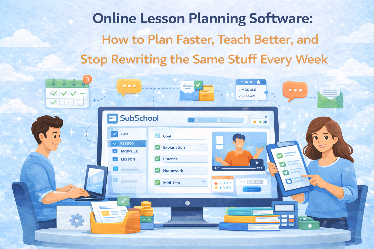 Online lesson planning software exists to fix that. Not with “cool templates” — with systems: reusable structure, faster prep, consistent delivery, and less mental load. And when it’s built into a platform like SubSchool, your plan isn’t just a plan — it’s directly connected to lessons, homework, live sessions, recordings, chats, and student progress.
